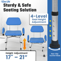 The EZee Life CH2075 is also fully height adjustable to suit your needs. Its telescoping legs can be easily set between 17” and 21” seat height, ensuring an optimal fit for different users and varying tub or shower heights. A sturdy, rust-resistant aluminum frame provides dependable strength for daily use in wet environments, and each leg is capped with a non-slip rubber tip for traction on slick bathroom floors. This heavy-duty shower chair supports up to 350 lbs, giving you reliable support and peace of mind during every bath or shower. With the CH2075 Swivel Shower Chair, you can enjoy greater independence, comfort, and safety in your bathing routine.