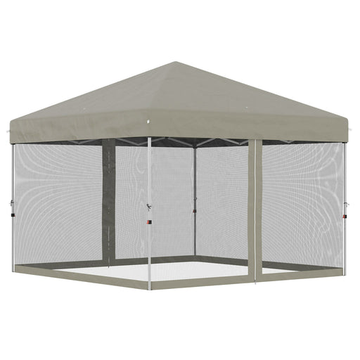 Outsunny 10' x 10' Pop-Up Party Tent Outdoor Canopy Tent with Mesh Sidewalls, 3-Level Adjustable Height, Roller Bag, Beige