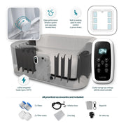 Introducing the Pacific—our fabulous new 4/6-person square hot tub! With its sleek integrated heater cleverly built into the tub walls, the design is not only space-saving but also exceptionally quiet. Setup? Absolute breeze! Just 15 minutes and you’re ready to dive into relaxation. Choose from exciting new colours like Sage and the chic Gray Rattan with a transparent inner liner.