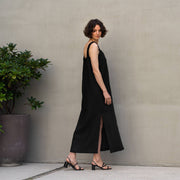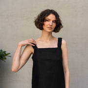 Crafted from washed mid-weight 200gsm Linen fabric, this dress offers a luxurious feel while maintaining breathability on those hot summer days. ✔️ Sleeveless design, square neckline, maxi length. ✔️ Straight pinafore silhouette, elasticated back.