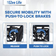 Safety comes standard with the EZee Life CH1090. The rear-wheel locking system and seat belt ensure a secure experience, whether you're sitting or transitioning to a standing position.
